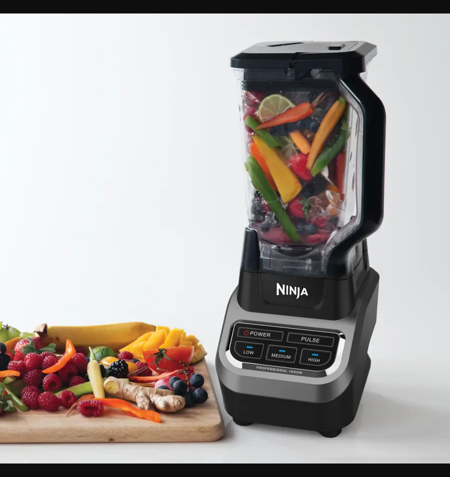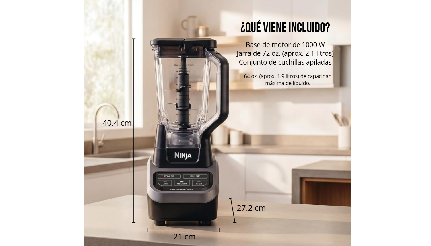 La licuadora profesional Ninja 1000 cuenta con un dise帽o elegante y un rendimiento sobresaliente con 1000 vatios de potencia profesional. Las cuchillas de trituraci贸n total de Ninja te proporcionan una perfecta trituraci贸n de hielo, mezcla, purificaci贸n y procesamiento controlado. La jarra profesional de 72 oz. XL es ideal para hacer bebidas y smoothies para toda la familia.