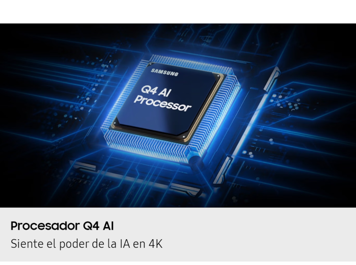 Banner promocional del Procesador Q4 AI de Samsung con el texto "Siente toda la potencia de la AI en 4K" sobre fondo negro.